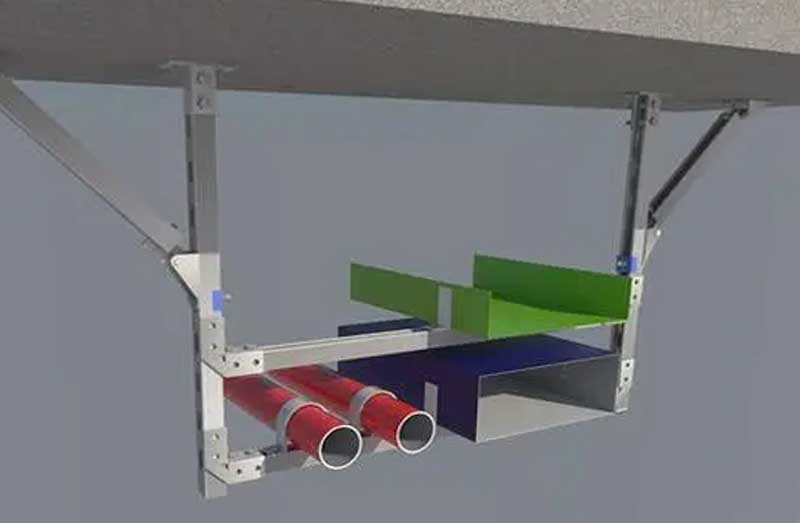 機電抗震支架是限制附屬機電工程設施產生位移,控制設施振動,并將荷載傳遞至承載結構上的各類組件或裝置。